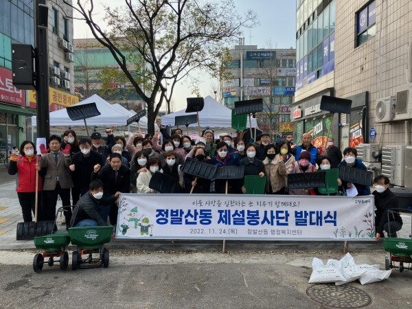 이날 발대식에서는 정발산동 직능단체와 주민들 약 50여명이 참여한 가운데, 관내 제설차량 진입이 어려운 인도와 좁은 이면도로 등 제설 취약구역을 중심으로 제설 봉사단원들에게 작업구역을 안내했으며 제설장비를 점검하고 제설장비 사용요령을 숙지하는 시간을 가졌다.