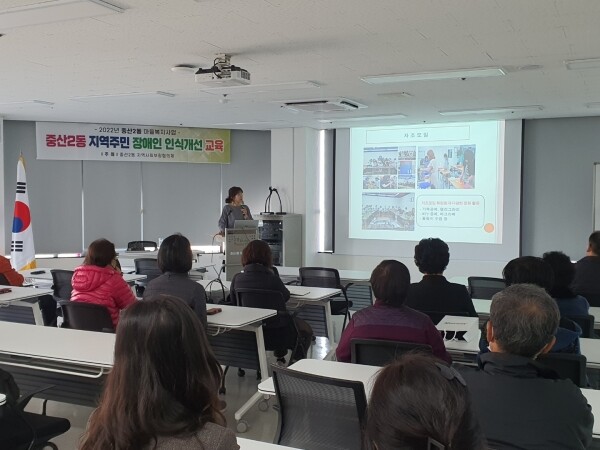 중산2동장은“이번 교육에 참여하신 여러분이 장애인에 대한 이해와 배려의 마음을 나누는 씨앗이 돼서 가족과 이웃에 전달되길 바란다 더 이상 장애가 장애가 되지 않고 모두가 행복한 중산2동이 되도록 노력하겠다”고 전했다.
