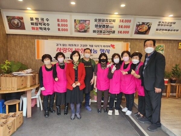 김태식 삼대전통막국수숯불갈비 대표는 “든든한 한 끼 식사로 어르신들이 따뜻한 겨울을 날 수 있길 바라는 마음에서 후원하게 됐다”며 “앞으로도 지속해서 사랑의 밥상 나눔 행사를 통해 우리 주위의 이웃들과 작은 사랑을 나누고 싶다”고 말했다.