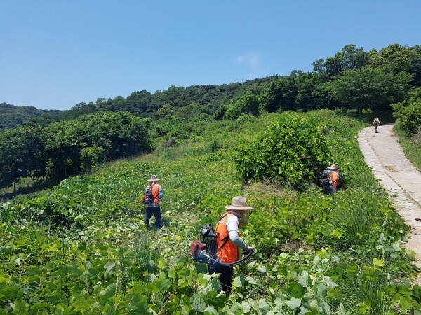 이에 군은 지난 5월부터 11월 초까지 사업비 약7억원과 임업기능인 58명을 투입해, 총 434ha의 덩굴 제거 작업을 실시했다.