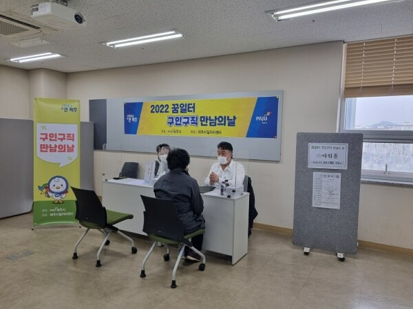 이번 행사에서 파주시일자리센터는 참여기업 정보안내 개인별 맞춤형 취업상담 등을 지원했으며 행사 전 참여기업의 급여 및 근무 여건을 면밀히 검토해 구직 대상자에 맞춰 사전 분류함으로써 면접 당일 미스매치가 최소화될 수 있도록 했다.