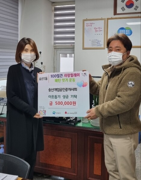 매년 ‘100일간 사랑릴레이 배턴잇기’에 동참해 나눔활동을 지속하는 송산개업공인중개사회는 올해에도 지역사회에 온정을 전하기 위해 회원들과 함께 성금을 마련했다고 한다.