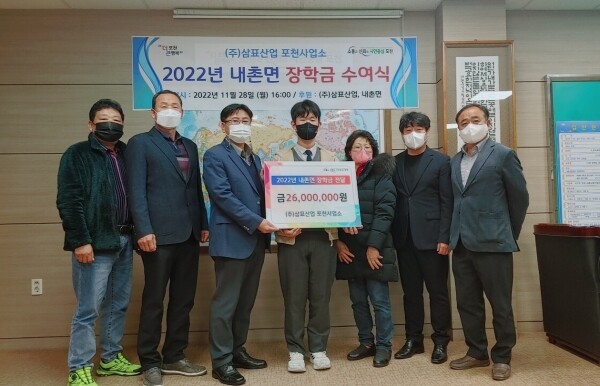 정진철 내촌면장은 “지역 인재육성을 위해 장학금을 전달해 주신 ㈜삼표산업 포천사업소 오홍석 대표님께 감사드린다 우리 지역 학생들에게 희망찬 미래를 여는 힘이 될 것이다”고 감사를 표했다.