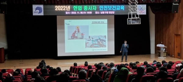 구는 대한산업안전협회 김종만 국장과 대한산업보건협회 오영덕 팀장을 초빙해 안전과 보건 분야를 나눠 교육을 진행했으며 산업재해의 각종 사고사례와 직무스트레스 예방·관리법, 산업안전보건법 주요 내용 등을 교육했다.