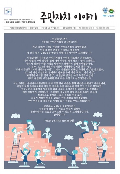 이번 소식지에는 주민총회 준비 과정, 현장의 모습, 주민총회 투표 결과 등 총회와 관련된 내용과 주민자치회가 1년간 활동한 모습들이 수록됐다.