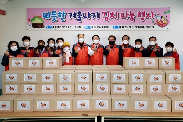 화도감리교회는 매년 화수2동 지역사회보장협의체를 통해 관내 복지사각지대 및 취약계층 주민들에게 김치를 후원하고 있다.