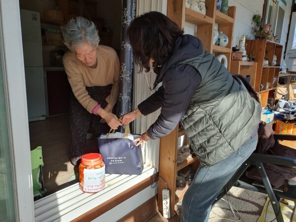 지역사회보장협의체 위원들이 각 가정을 방문해 독거어르신의 건강과 안전을 확인하며 직접 만든 소고기국과 반찬 3종, 찐빵 및 순무김치등을 전달했다.