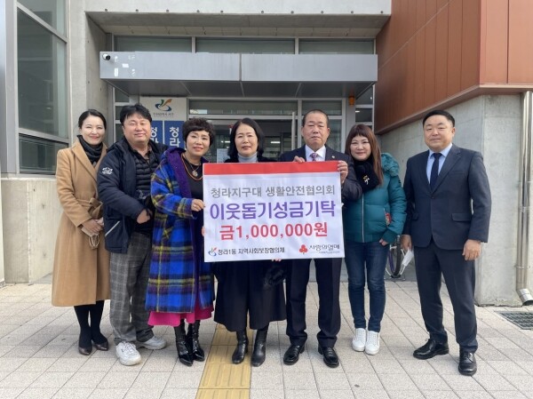 이에 김남효 청라1동장은 “이웃의 어려움을 함께 나누는 청라지구대 생활안전협의회에 고마움을 전한다”며 “관내 어려운 이웃들이 소외되지 않도록 더 많이 관심 갖고 촘촘한 지원책을 마련하겠다”고 밝혔다.