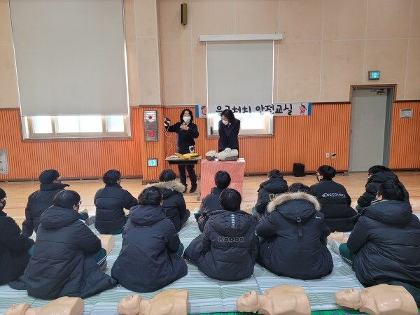 안전교육 전문기관에서 학교를 방문해 심폐소생술, 하임리히 법, 화재대피 방법, 방독면 착용 방법 등 이론 교육과 실습을 통해 알기 쉽게 설명했다.